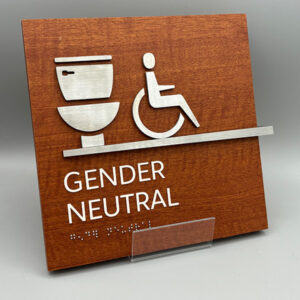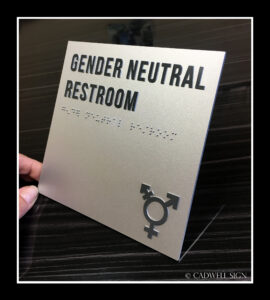 ADA bathroom sign complete with Braille dots meeting state and federal requirements and needed for a certificate of occupancy.